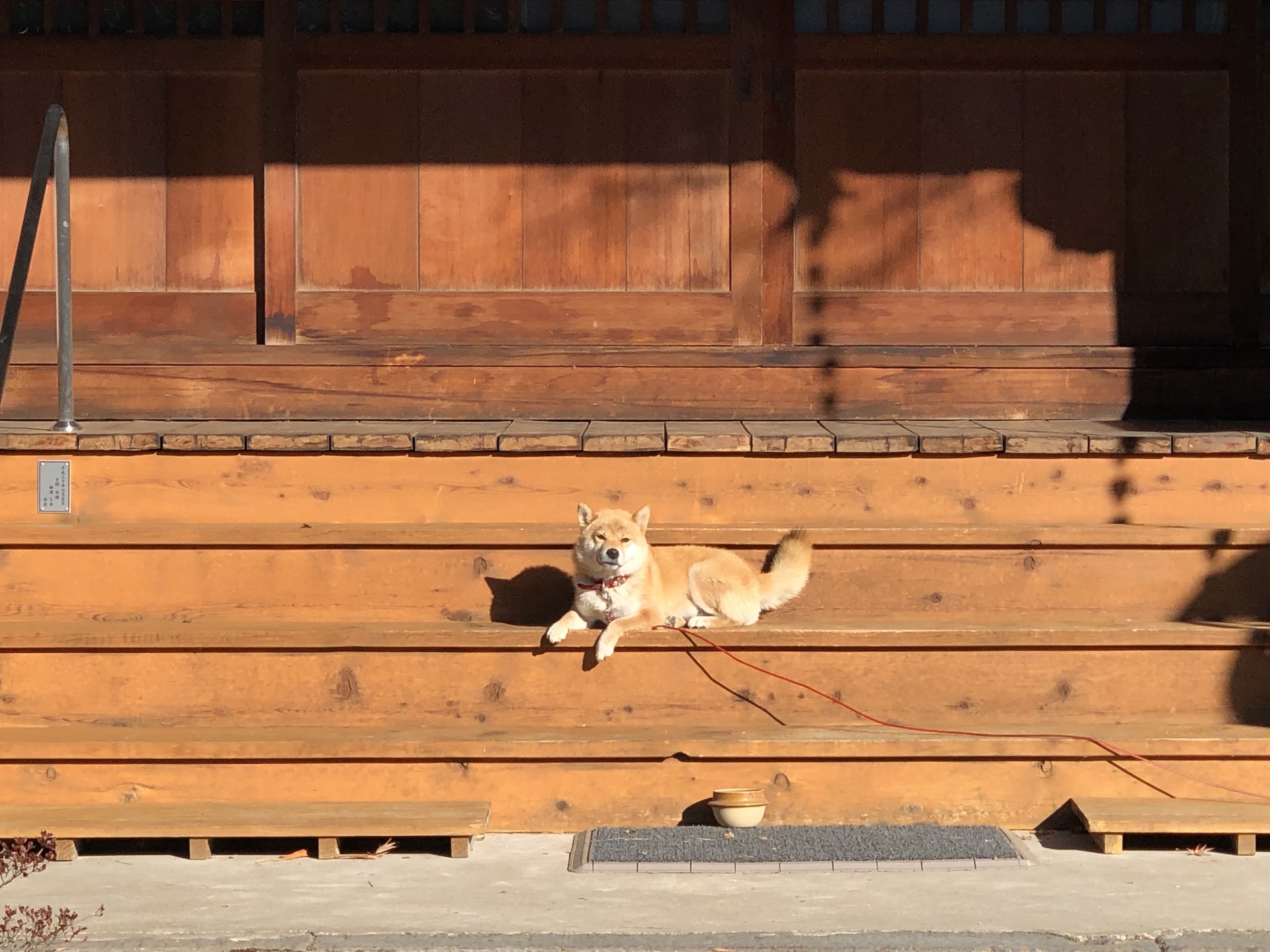 境内では、時おり犬のくるみさんがおもてなしをしてくれます。